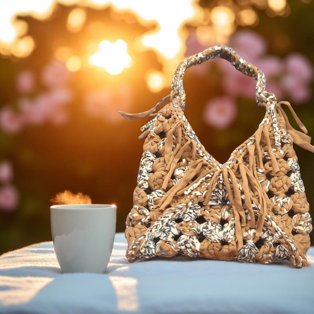 A practical and modern satchel, fordaily use. Made in thick tshirt yarn, comes with inside linen sachet.