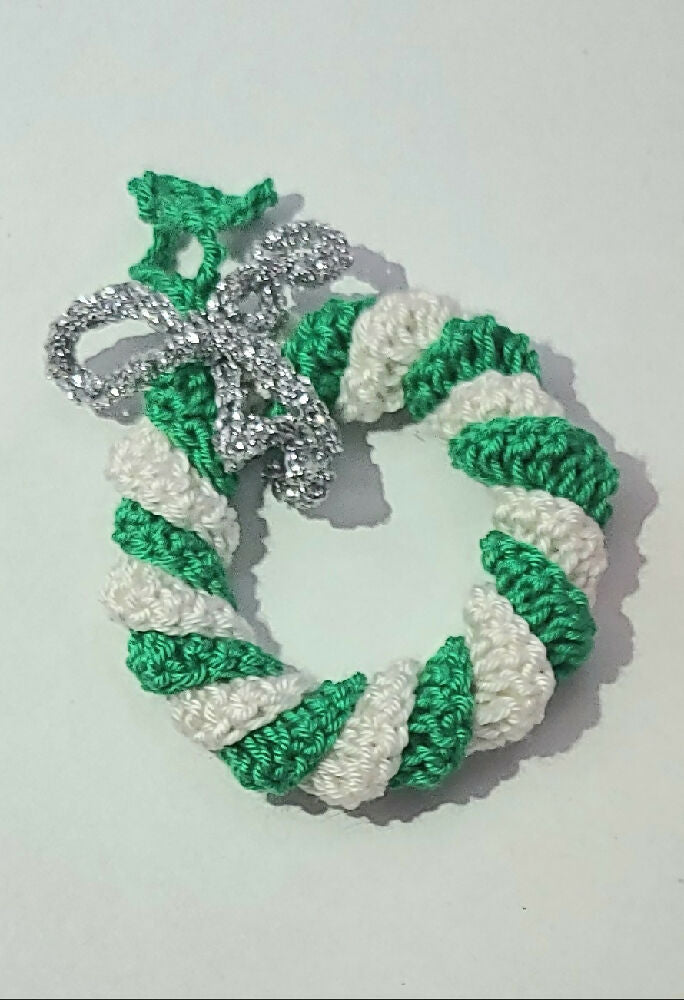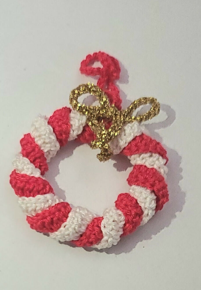 Mini twisted crochet wreath, the perfect decor for your tree. Size 7cm