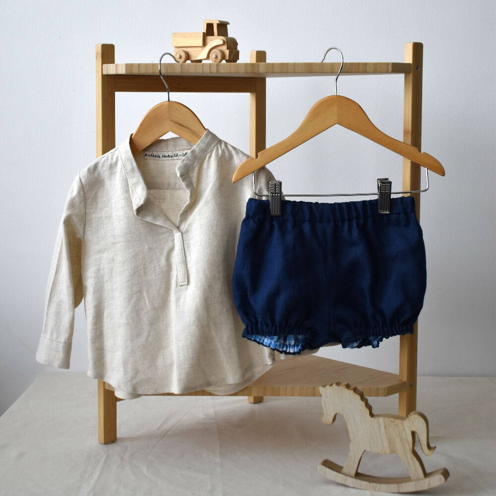 This outfit is more of the formal kind, made for the family gatherings or when you want your little one to look smarter. 100% linen, suitable for 12-18 months old.