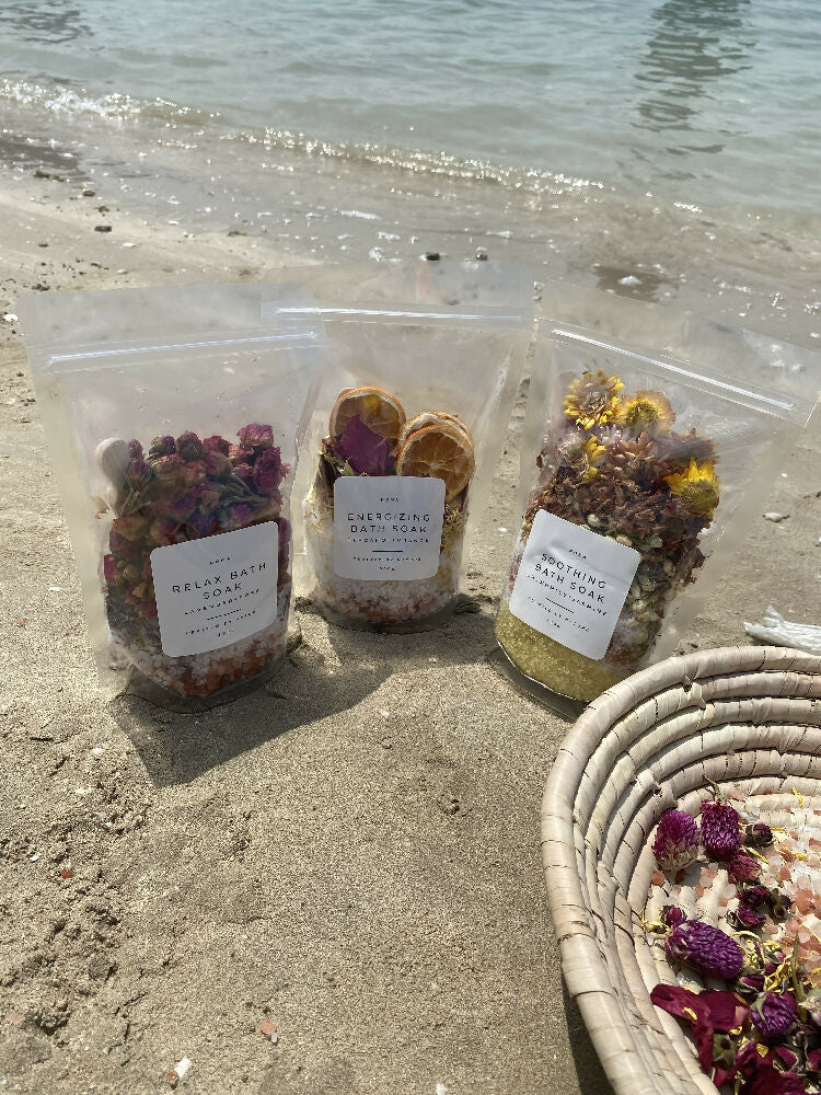 Unwind naturally. A soothing blend of mineral salts and natural botanical flowers that melts away tension and restores calm. Infused with essential oils for a gentle, spa-like experience at home.