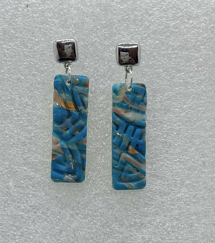 Bold turquoise marbled drop earrings with a sleek silver stud—modern, artistic, and effortlessly eye-catching. Perfect for elevating any outfit with a pop of color. ✨